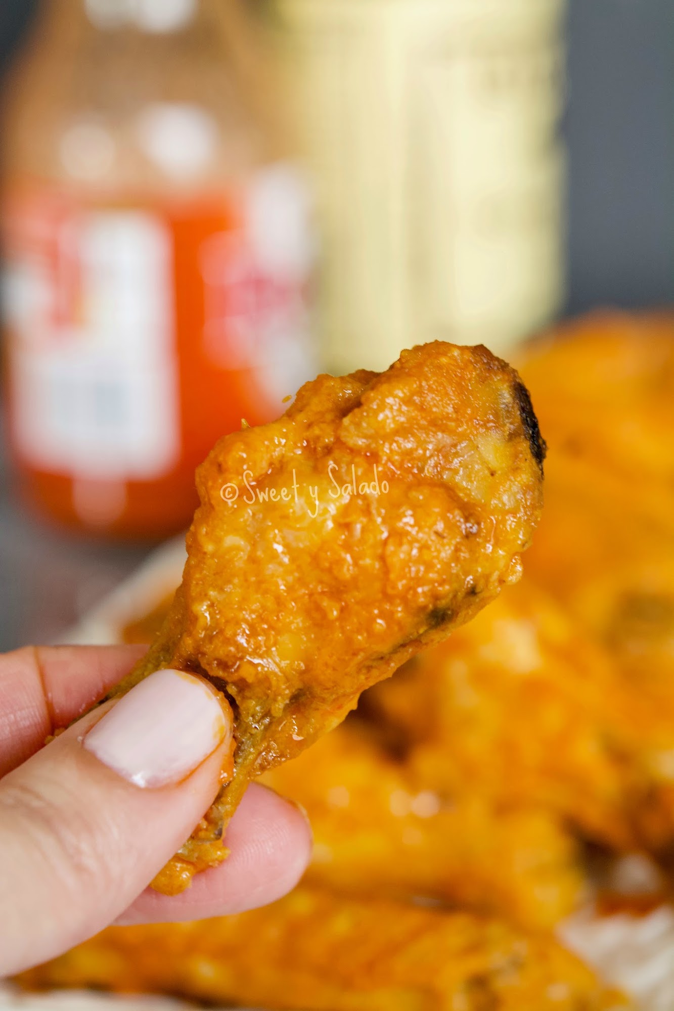 - Once the wings are ready, place them in a large bowl and add as much or as little sauce as you want and toss them to cover them well. Serve immediately.